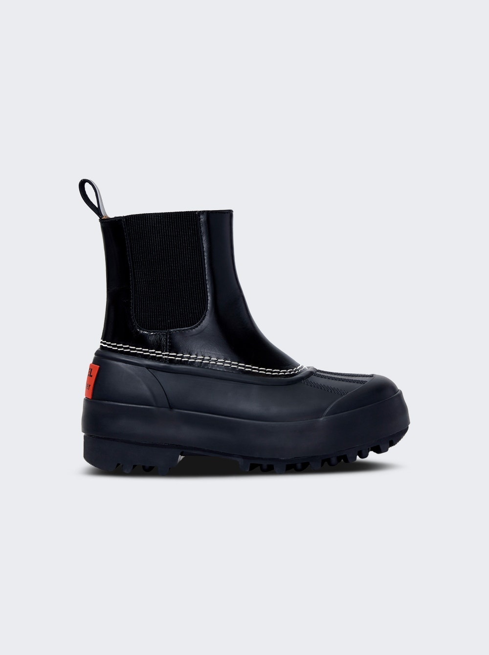Details - Limited edition collaboration combines SOREL heritage and uncompromising function with Proenza Schouler’s unique and elevated design codes. - The Caribou Chelsea Boots feature a waterproof semi-gloss leather structure complemented by adjustable gore side panels for a custom fit. - The vulcanized rubber shell includes a textured forefoot and smooth toe cap with a custom logo patch at the back. - Detailed with a leather heel pull tab, a cushioned foam midsole, and a soft leather lining for enhanced comfort. - Finished with molded EVERTREAD™ rubber along the outsole for optimized traction and durability. - Heel Height: 1 in.; Shaft Height: 6 3/4 in. - Measurements based on size 7 - Fit Tip: Fit is generous, designed for a casual wearing experience with socks. Brand Style: 2123041 Designer/Brand: PROENZA SCHOULER