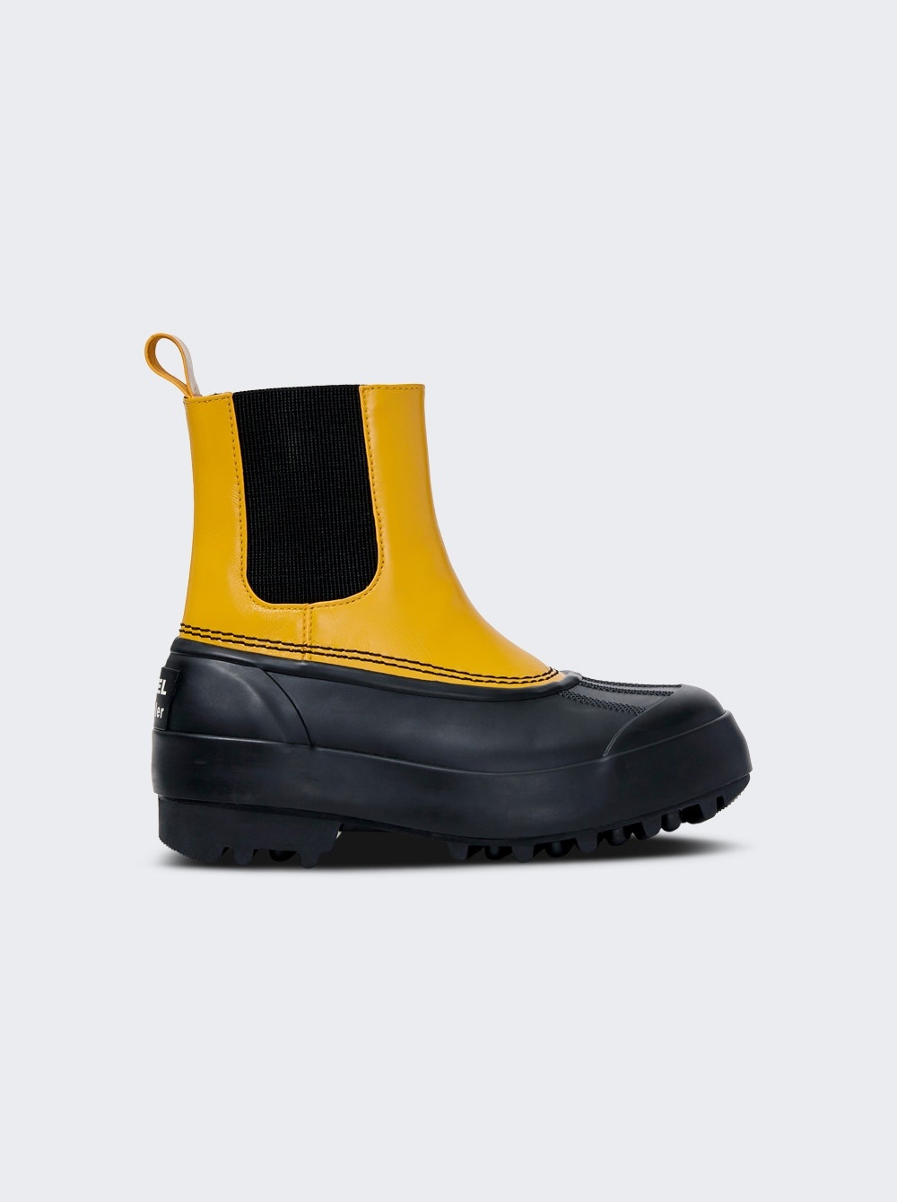 Details - Limited edition collaboration combines SOREL heritage and uncompromising function with Proenza Schouler’s unique and elevated design codes. - The Caribou Chelsea Boots feature a waterproof semi-gloss leather structure complemented by adjustable gore side panels for a custom fit. - The vulcanized rubber shell includes a textured forefoot and smooth toe cap with a custom logo patch at the back. - Detailed with a leather heel pull tab, a cushioned foam midsole, and a soft leather lining for enhanced comfort. - Finished with molded EVERTREAD™ rubber along the outsole for optimized traction and durability. - Heel Height: 1 in.; Shaft Height: 6 3/4 in. - Measurements based on size 7 - Fit Tip: Fit is generous, designed for a casual wearing experience with socks. Brand Style: 2123041 Designer/Brand: PROENZA SCHOULER