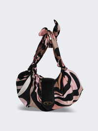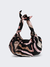 Leather-trimmed knotted printed silk-twill shoulder bag Pink