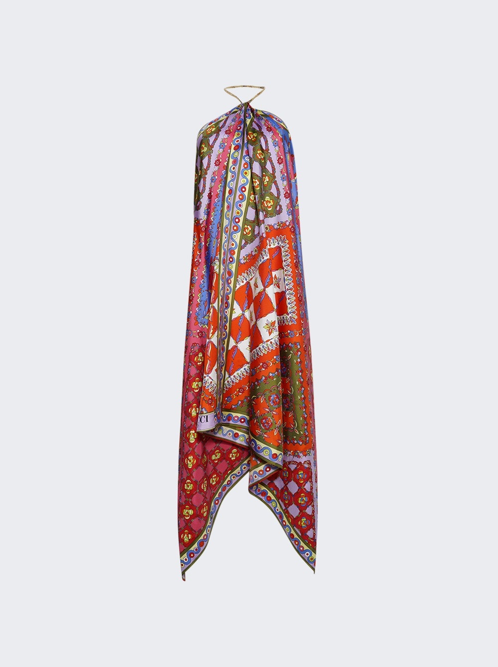 Details - Halterneck - with handkerchief hem - Lobster claw fastening - Chain-link trim - Logo pendant at back - Low back - Mid-length - 100% Silk - Model is 5'9"/175cm and is wearing a size IT40 Brand Style: 4URH01-4U881 Designer/Brand: PUCCI