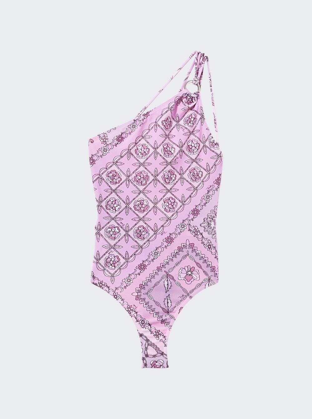 Details - Lattice-like pattern with artistic floral motifs - Cut from UV-protective eco-LYCRA® - Single-shoulder design with slim straps - Open back - Ring detail - Kindly note that this product, as well as many other Pucci items, is made using an allover print and it falls differently on each garment, so the product you will receive may differ from the one in the picture. - 80% nylon, 20% elastane - Model is 5'9"/175cm and is wearing a size S Brand Style: 4UMC06-4U845 Designer/Brand: PUCCI