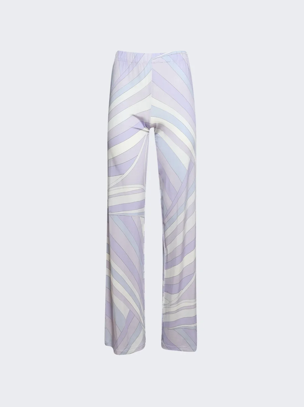 Details - Shiny, satin jersey pants - Elastic waistband - Iconic Iride print - Straight cut - The all-over print makes the product unrepeatable. Therefore, the pattern print may vary from the one displayed in the photo. - Material: 95% Viscose, 5% Elastane Vendor Color Code: Brand Style: 5UJT31-5U757 Designer/Brand: PUCCI