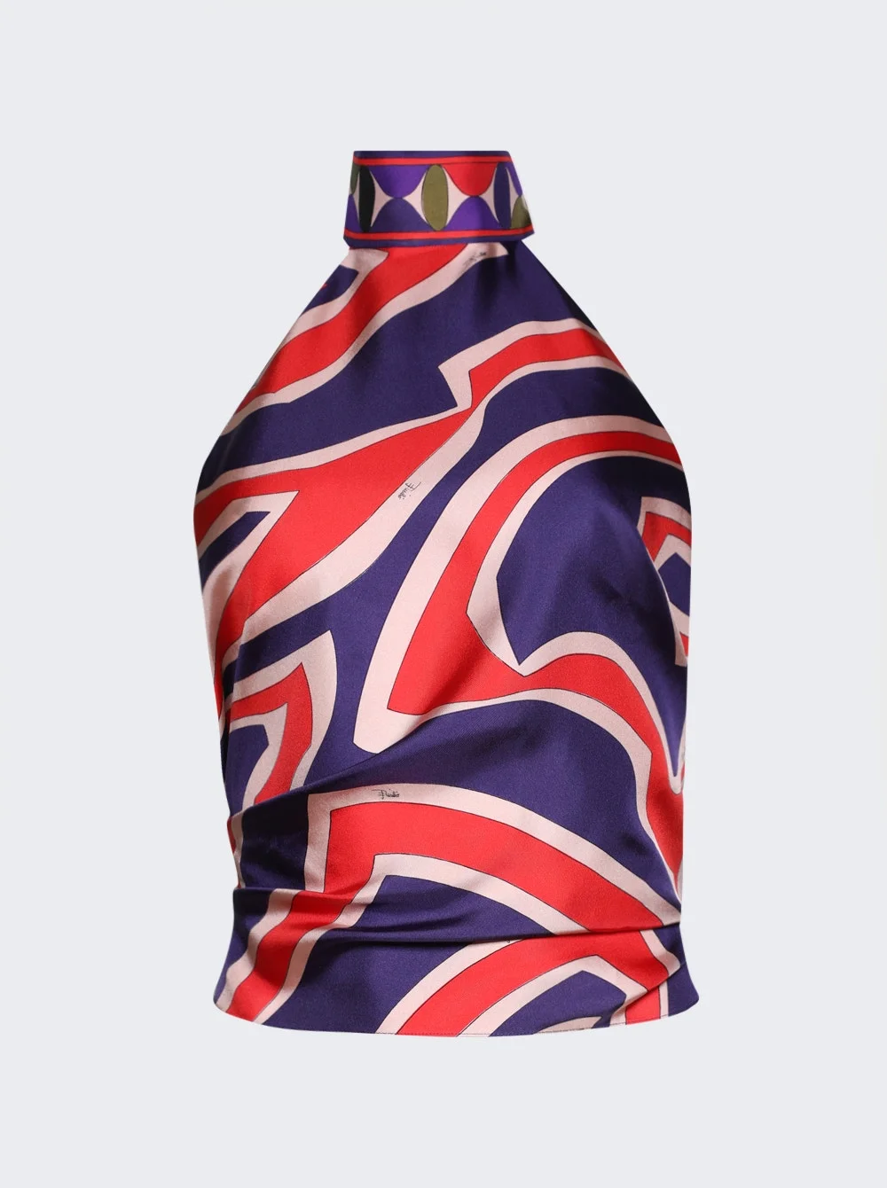 Details - Silk-twill top - Halter neck with an adjustable tie - Open back - Signature Labirinto print - The all-over print makes the product unrepeatable. Therefore, the pattern print may vary from the one displayed in the photo. - Material: 100% silk Vendor Color Code: Brand Style: 5URM43-5U741 Designer/Brand: PUCCI