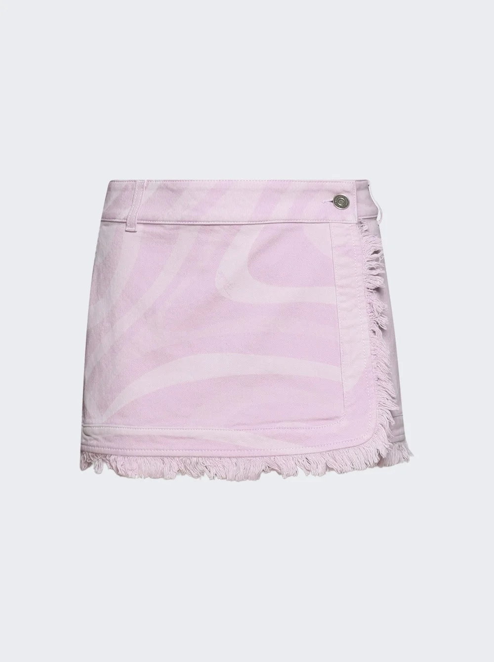 Details - Denim wrap mini skirt - Marmo-effect laser work - Slightly stretchy Kane piece-dyed denim - The all-over print makes the product unrepeatable. Therefore, the pattern print may vary from the one displayed in the photo. - Material: 98% Cotton, 2% Elastane Vendor Color Code: Brand Style: 5UDV16-5U997 Designer/Brand: PUCCI