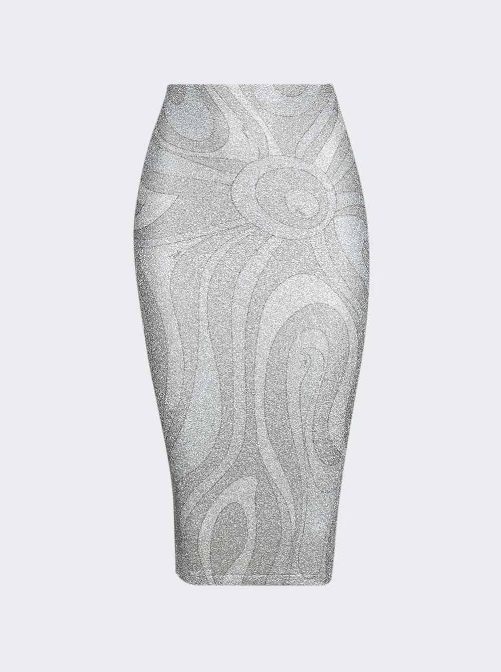 Marmo Print Midi Skirt In Jersey Lamé Silver