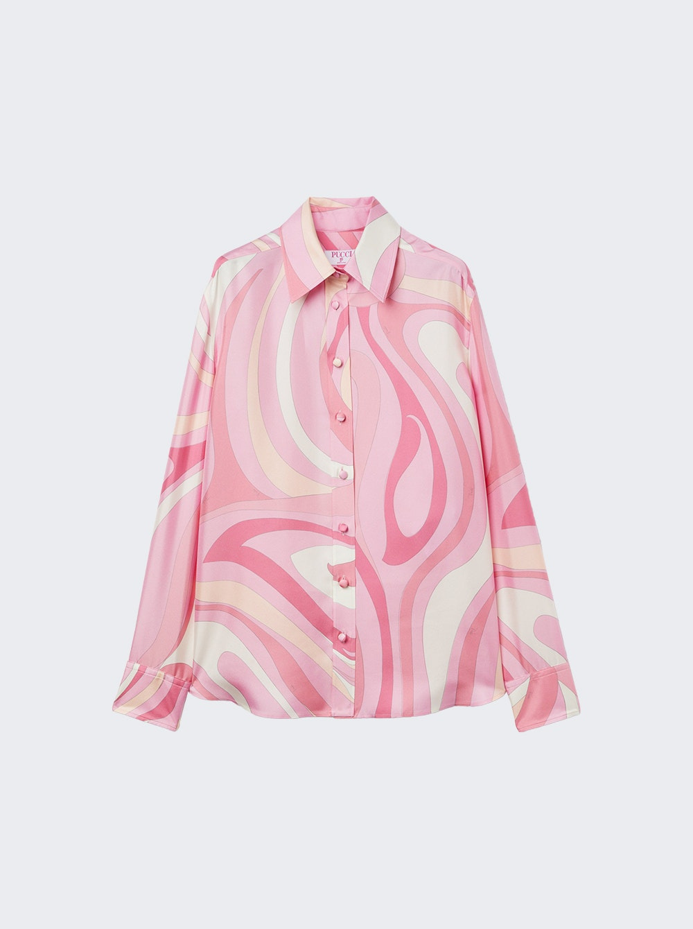 Details - Regular fit - Long sleeves - Button closure - Marmo print - The all-over print that makes the product unrepeatable. Therefore, the pattern print may vary from the one displayed in the photo. - Care according to label - Material: 100% Silk Size Information: Vendor Color Code: Brand Style: 5HRJ08 5H761 Designer/Brand: PUCCI