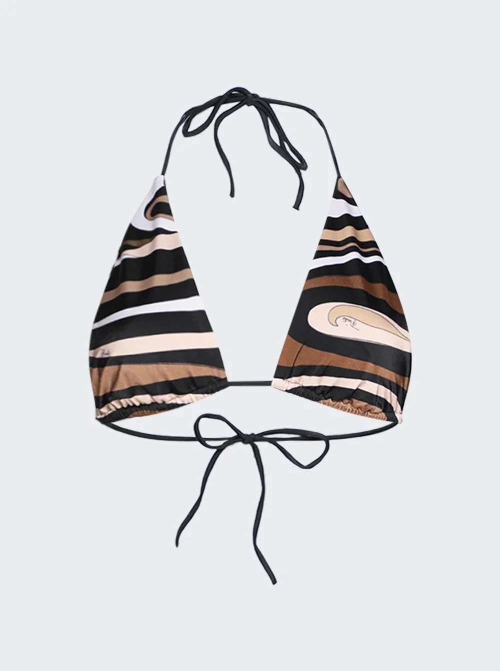Details - Triangle bikini top - Adjustable tie closures - Signature Marmo print - Stretch Lycra with UV protection - The all-over print makes the product unrepeatable. Therefore, the pattern print may vary from the one displayed in the photo. - Material: 80% Polyamide, 20% Elastane Vendor Color Code: Brand Style: 5UMX00-5U775 Designer/Brand: PUCCI