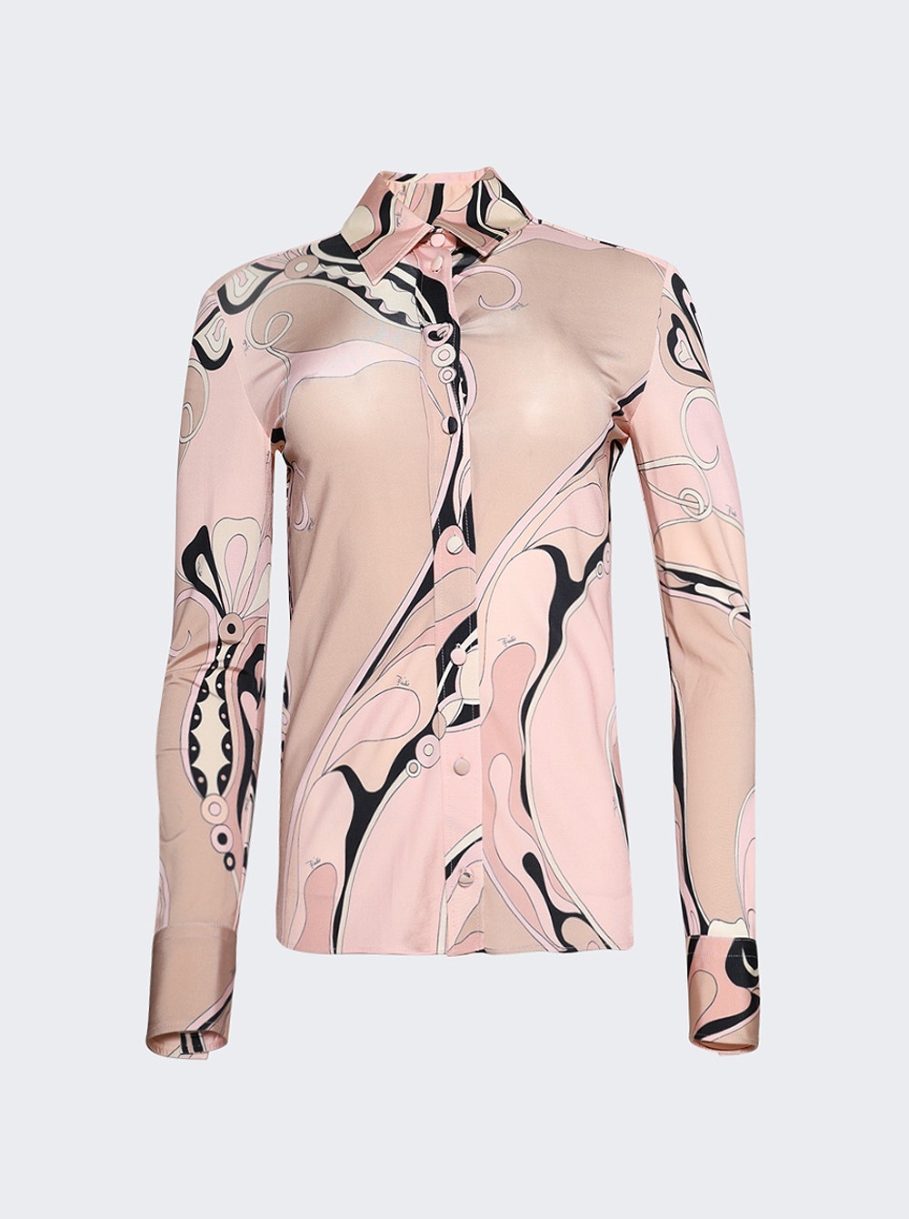 Details - Fitted silhouette - Classic collar - Long sleeves - Button closure - Orchidee print - Straight hem - Care according to label - Material: 95% Viscose, 5% Elastane - Model is 5'9"/175cm and is wearing a size IT40 Brand Style: 5HJJ07 5H737 Designer/Brand: PUCCI