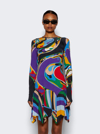 Details - Jersey mini - with a satin finish - Fitted bodice falls to a fluid handkerchief hem skirt - Orchidee-print - Long sleeves - Open back - Dropped waist - Rear button fastening - Kindly note that this product, as well as many other Pucci items, is made using an allover print and it falls differently on each garment, so the product you will receive may differ from one in the picture. - 95% rayon 5% elastane - Model is 5'9"/175cm and is wearing a size IT40 Brand Style: 4UJG45-4U737 Designer/Brand: PUCCI