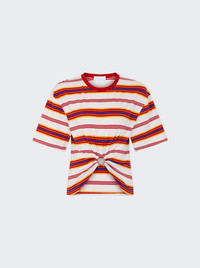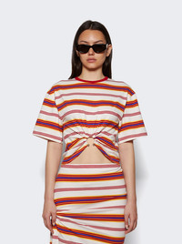 Details - Short sleeve cropped t-shirt - Striped and piercing detail - Material: 96% Cotton, 4% Elastane Size Information: Vendor Color Code: Brand Style: 25AJTO539CO0610 Designer/Brand: RABANNE