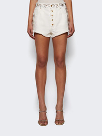 EMBROIDERED OFF WHITE DENIM SHORTS