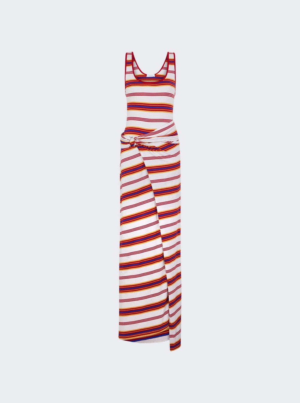 Details - Sleeveless long - in jersey - Cream, orange, and blue stripe pattern - Silver piercing detail at the waist - Material: 96% Cotton, 4% Elastane Size Information: Vendor Color Code: Brand Style: 25AJRO125CO0610 Designer/Brand: RABANNE