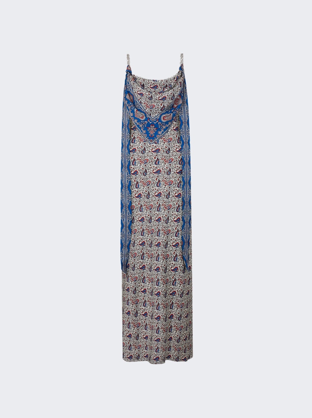Details - Long satin - with strap detail - Paisley bandana print - Sleeveless, cowl neck - Gold chain straps - Material: 100% Polyester Size Information: Vendor Color Code: Brand Style: 25ACRO124PO0337 Designer/Brand: RABANNE