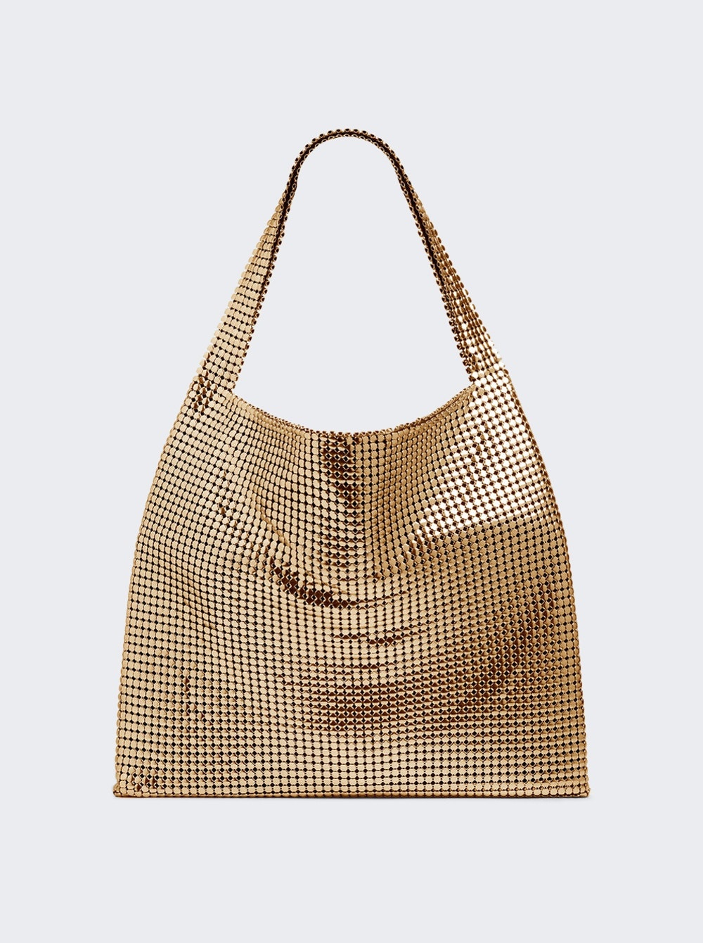 Details - Large, supple mesh bag - Jacquard lining - A striking and iconic signature of Maison Rabanne - Carry over the shoulder or by hand - Snap closure - 100% Aluminum mesh Brand Style: 24PSS0434MET598 Designer/Brand: RABANNE