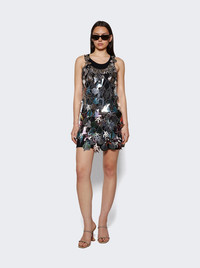 Layered embellished chainmail and jersey mini dress Silver