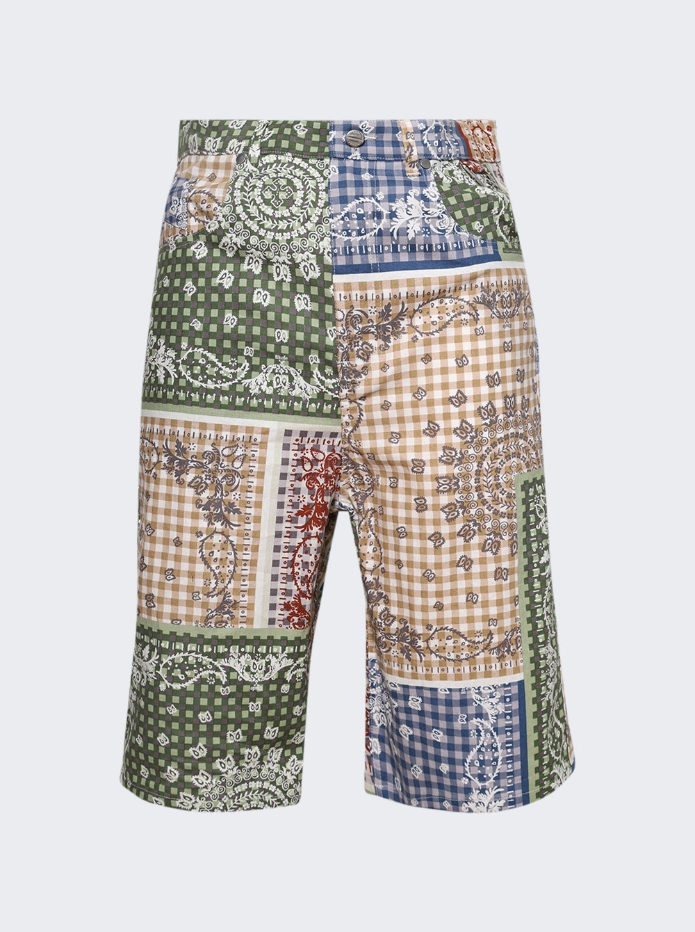 Details - Baggy fit - Belt loops - Zip and button closure - 5 pocket design - Bandana design - Logo patch on the back - Care according to label - Model is 6'1"/185cm and is wearing a size M Brand Style: RHSS25SH01217 Designer/Brand: RHUDE