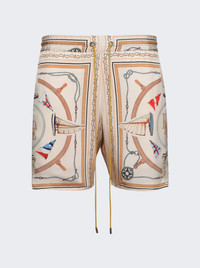Details - Elastic waistband - Exaggerated drawstrings in mustard tone - Straight hem - Topstitching Dimensions: Model is 6'1"/185cm and is wearing a size M Composition: 100% Silk Care: Care according to label Brand Style: RHSS24SH13174108 Designer/Brand: RHUDE