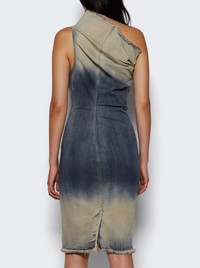 Details - Denim - with asymmetrical neckline - One shoulder can be worn up or down - Signature seam down the center back - Stone washed denim with a natural stretch - Hand-sprayed for a degrade coloration - Material: 91% Cotton, 6% Elastomultiester, 3% Rubber fiber Size Information: Vendor Color Code: Brand Style: RP02E4520 SHUDEG Designer/Brand: RICK OWENS