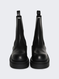 Details - Above the ankle boots - Geometric side panels in stretch elastic - Angular heel and back pull tab - Rounded toe - Bogun rubber mega crepper sole with a toothed heel - Medium-weight cow leather, finished with natural waxes - Natural markings and shadings are visible on the leather, making each product unique - Heel: 7.5cm / Platform: 4cm - Material: Calf Leather; Thermoplastic Polyurethane Size Information: Vendor Color Code: Brand Style: RP02E4832 LOO Designer/Brand: RICK OWENS