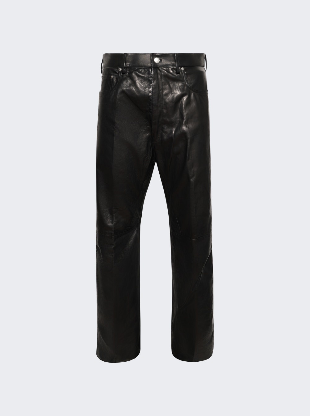 Details - Regular fit - Straight leg - Belt loops - 6 pocket detailing - Zip and button closure - Care according to label - Material: Leather Size Information: Vendor Color Code: Brand Style: RU02E1333 LNV Designer/Brand: RICK OWENS