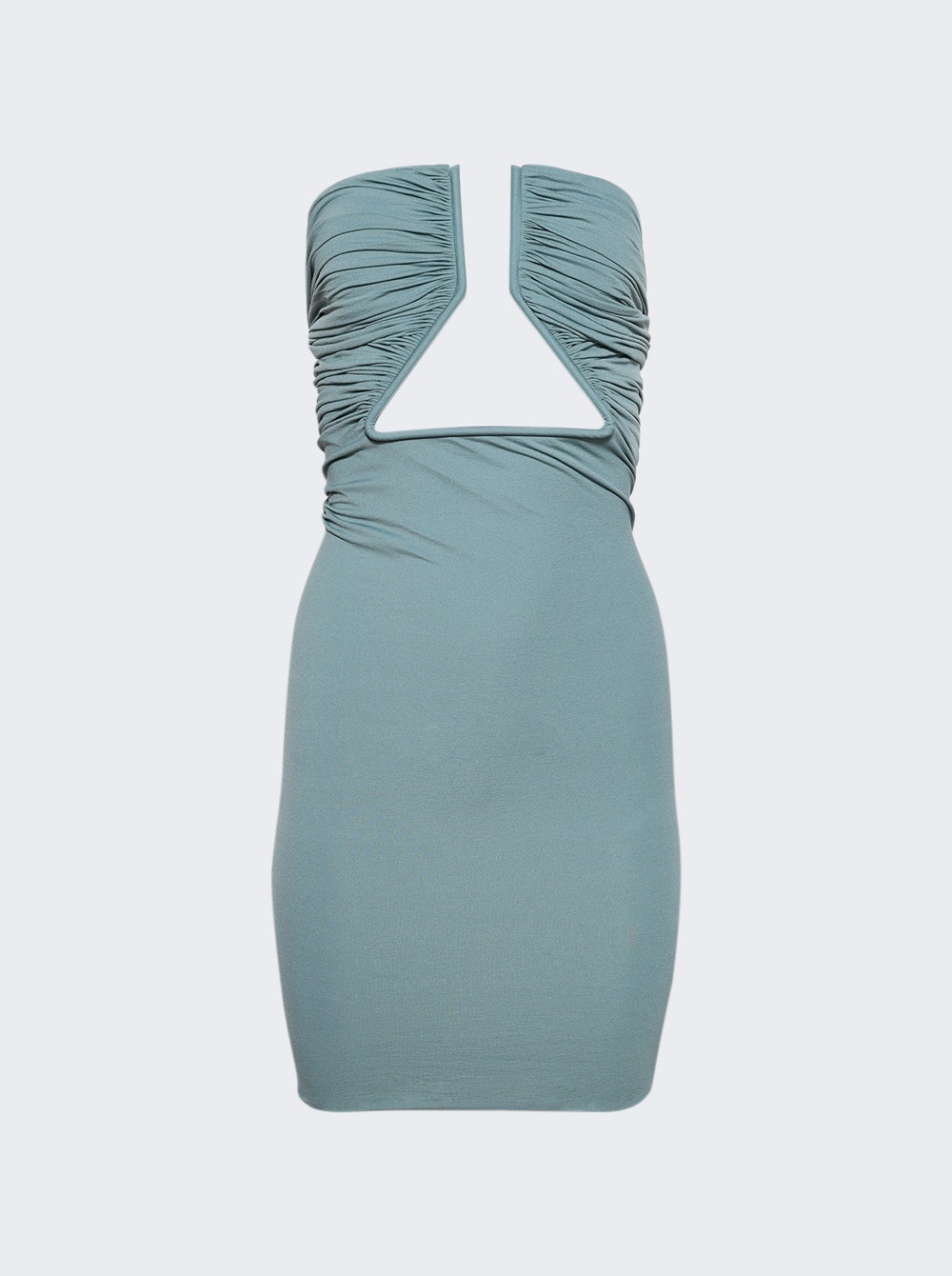 Details - Fitted silhouette - Mini length - Cutout at straight neck - Boning at chest - Care according to label - Material: 91% Nylon, 9% Elastane - Model is 5'9"/175cm and is wearing a size IT40 Brand Style: RP01E7530 JN Designer/Brand: RICK OWENS