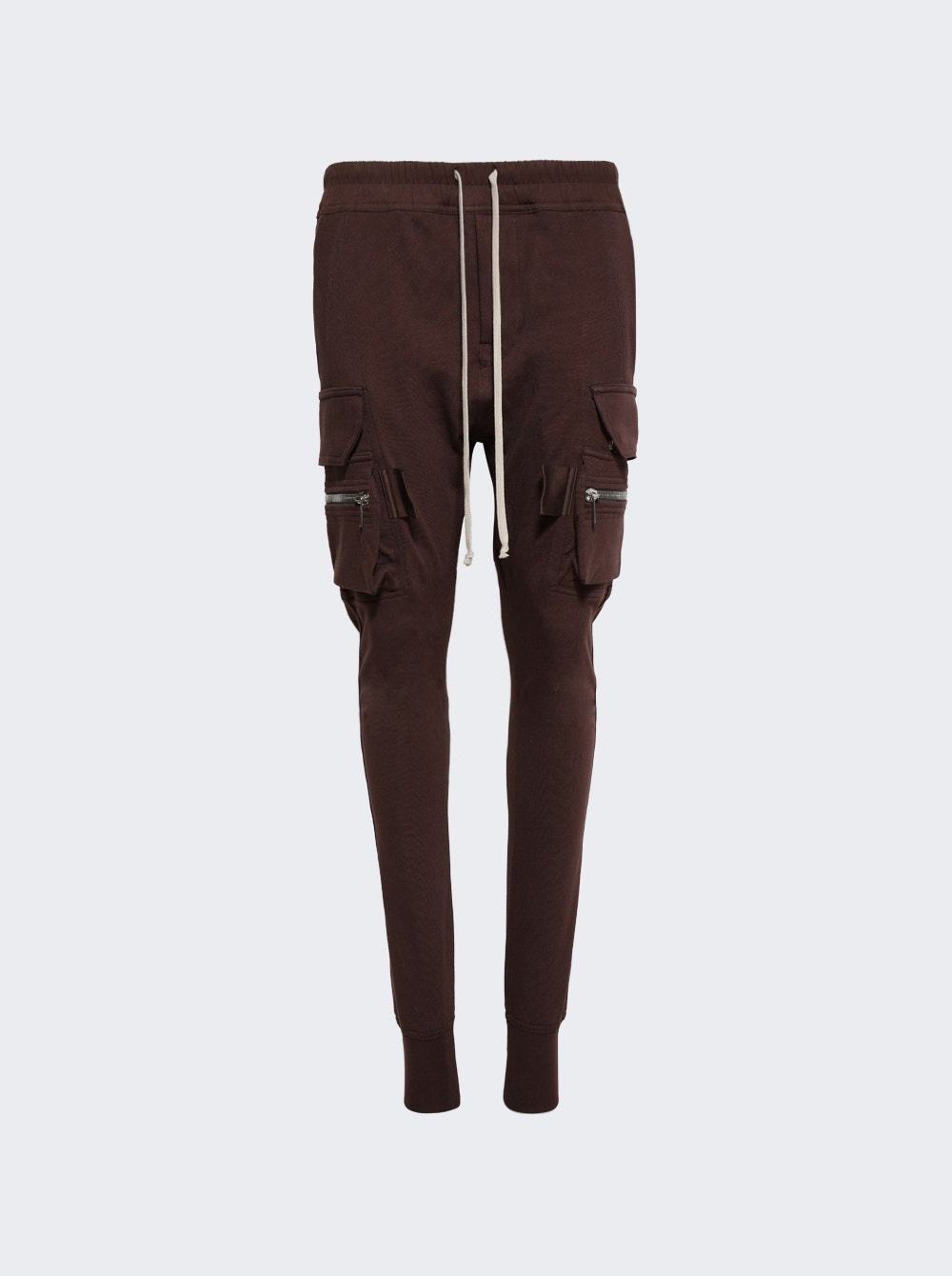 Details - Relaxed fit - Drawstring fastening - Elasticized waistband - Four pocket design - Button-fly - Pen slots at front legs - Rib knit cuffs - Cargo and zip pocket at outseams - Care according to label - Material: 100% Cotton - Model is 5'9"/175cm and is wearing a size IT40 Brand Style: RP01E7323 BA Designer/Brand: RICK OWENS