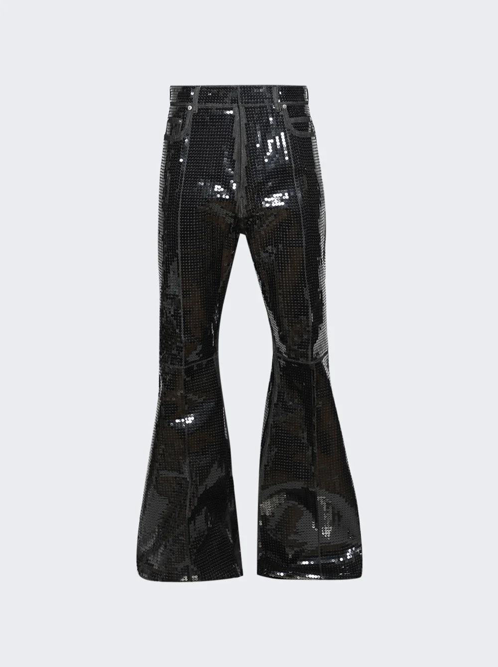 Details - Regular fit - Bootcut leg - Belt loops - Zip and button closure - 6 pocket design - All over sequin design - Care according to label - Material: 91% Cotton, 6% Elastomultiester, 3% Rubber Vendor Color Code: Brand Style: RR01F2335 SRAKM3 Designer/Brand: RICK OWENS
