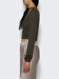 Slashed Long Sleeve Cropped Sweater Bosco Green