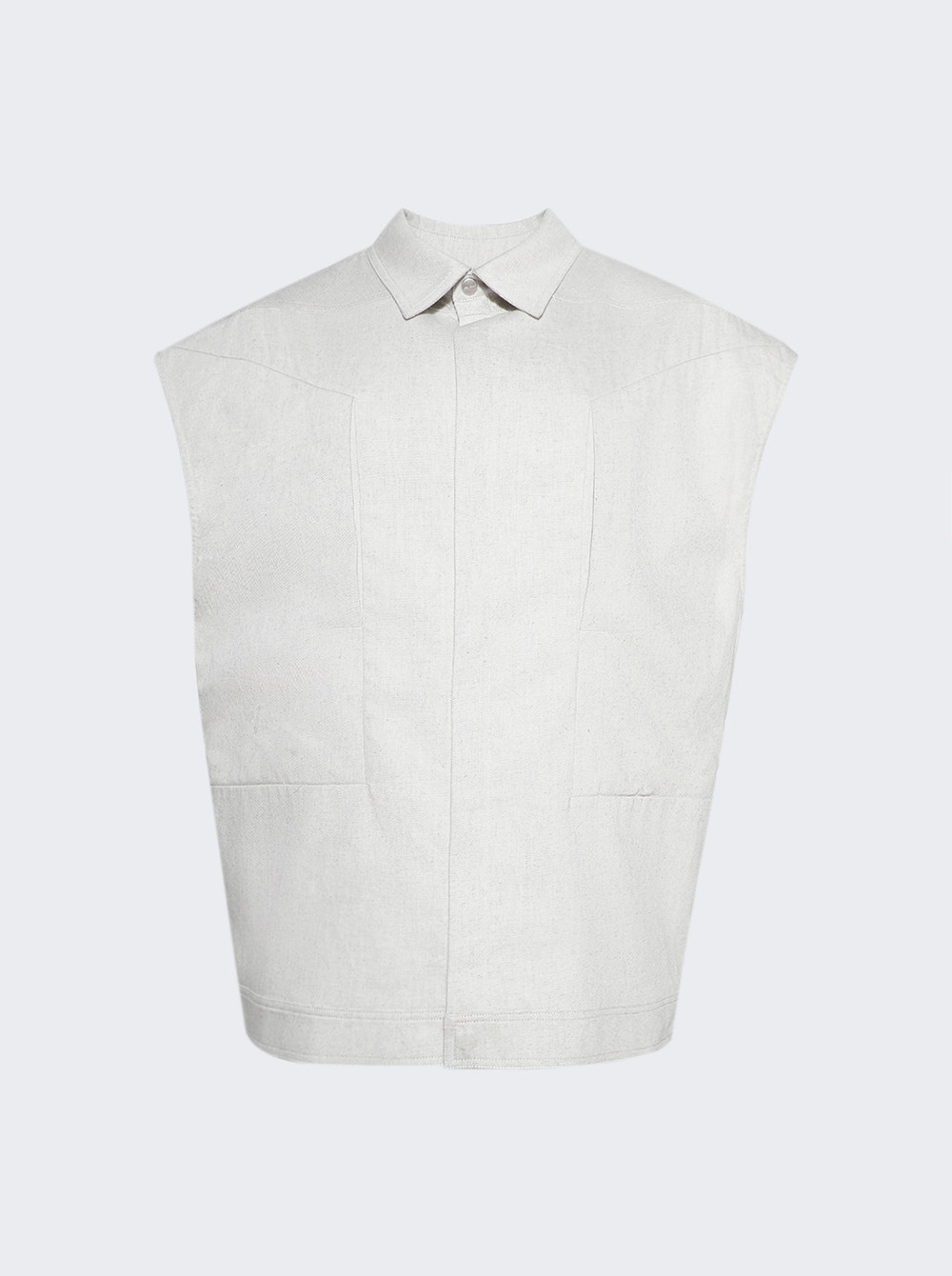 Details - Boxy fit - Sleeveless - Spread collar - Snap button closure - 2 chest pockets - Care according to label - Material: Cotton - Model is 6'1"/185cm and is wearing a size IT48 Brand Style: RU01E5776 DRD Designer/Brand: RICK OWENS