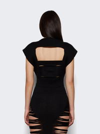Details - Fitted silhouette - Cropped design - Boat neck - Cap sleeves - Cut out on the front and back - Ribbed waistband - Care according to label - Material: 100% Wool - Model is 5'9"/175cm and is wearing a size S Brand Style: RO01E7626 CHM Designer/Brand: RICK OWENS