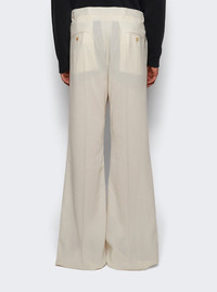 Details - Regular fit - Zipper and wrap button closure - Two side seam pockets - Two back welt pockets with buttons - Pressed creases on the front - Wide leg - Care according to label - Material: 100% Wool - Model is 6'1"/185cm and is wearing a size M Brand Style: RU01E5350 WA Designer/Brand: RICK OWENS