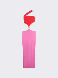 Long Assymetric Dress With Jewel Detail Pink And Red