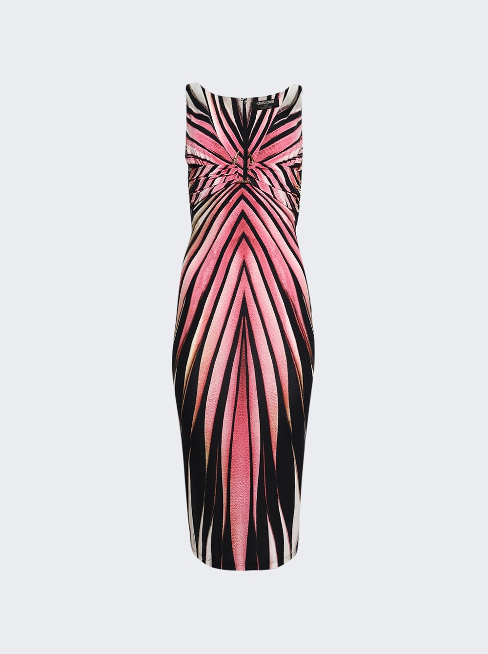 Details - Fitted silhouette - Midi length - V neckline - Sleeveless - Rear zip closure - Care according to label - Material: 86% Nylon, 14% Elastane - Model is 5'9"/175cm and is wearing a size IT40 Brand Style: VKT100 LNM33 02500 Designer/Brand: ROBERTO CAVALLI