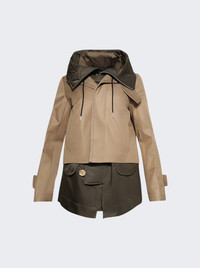 Details - Layered nylon and cotton short trench coat - Hooded, front zip closure - Front pockets - Drawstrings at hood - Storm flap collar - Material: Polyamide, Cotton Size Information: Vendor Color Code: Brand Style: 25-08025 Designer/Brand: SACAI