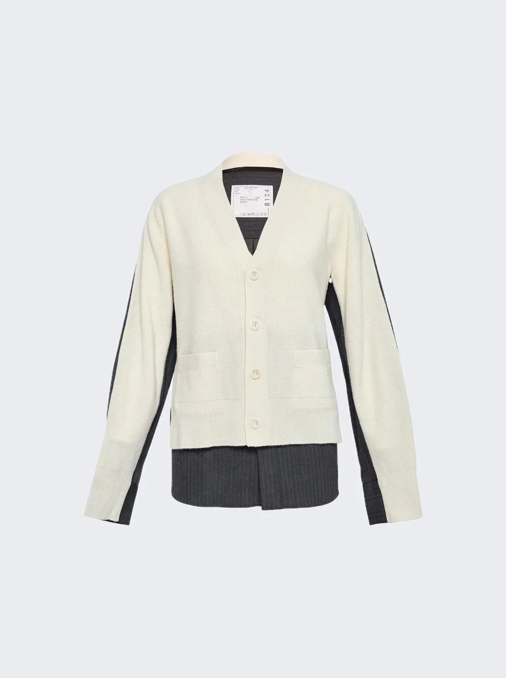 Stripe Doeskin X Wool Knit Cardigan Off White And Grey