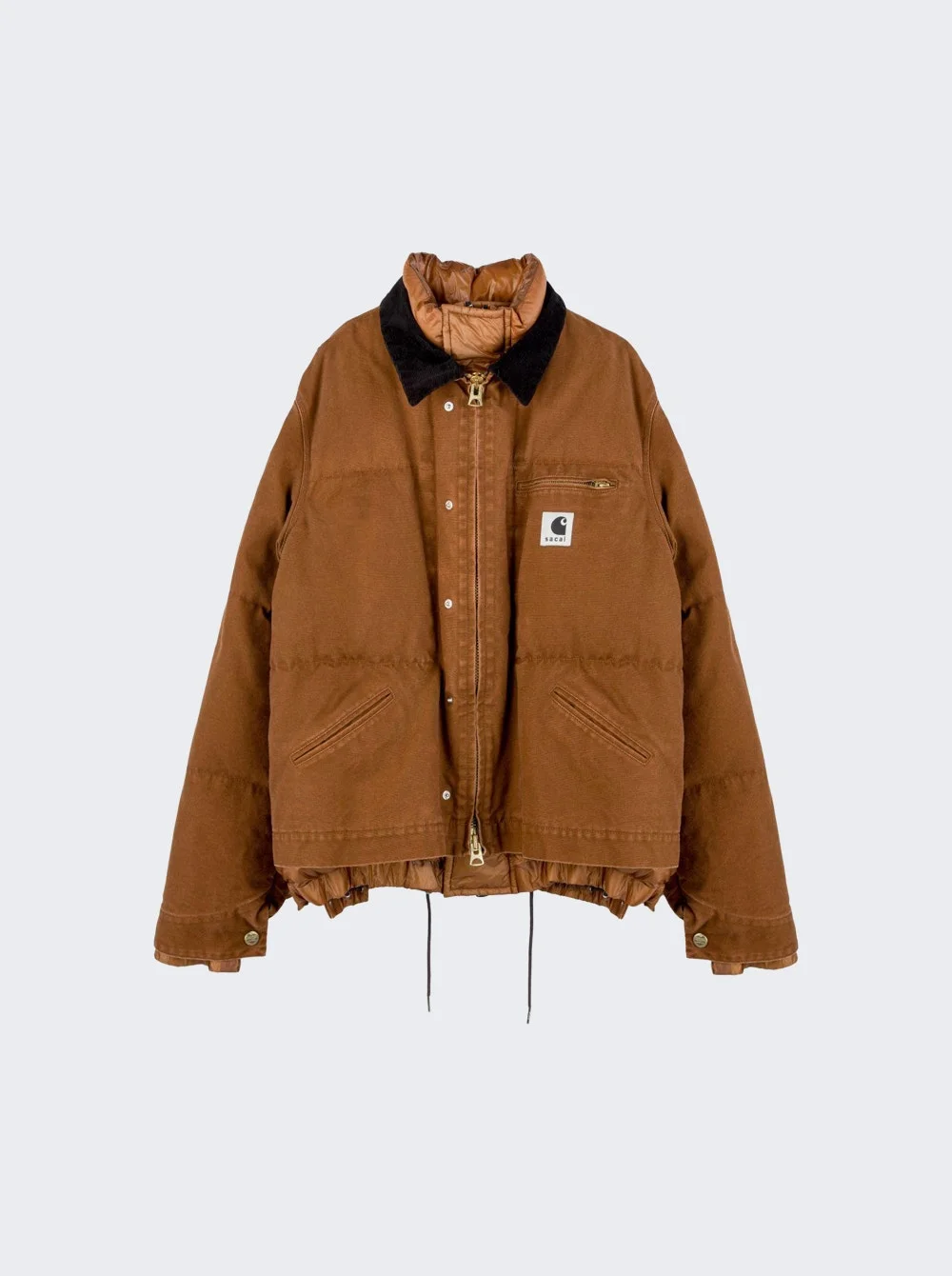 Details - Designed in collaboration with Carhartt WIP, this garment combines Carhartt WIP’s Detroit Jacket with Sacai’s puffer jacket as an insulated lining, attached through classic down jacket stitching. - Cotton duck canvas outer layer - High-density nylon taffeta inner puffer - Filled with recycled down - Co-branded woven label on the chest pocket - Material: 100% Cotton (organic, Dearborn Canvas); Lining: 100% nylon; Filling: 100% down Size Information: Vendor Color Code: Brand Style: 25-08083 Designer/Brand: SACAI