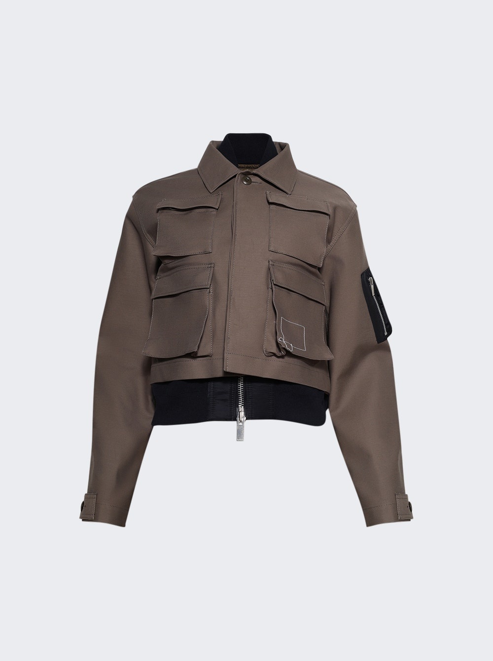 Details - Part of the Sacai x WTAPS collaboration - Padded cotton broadcloth and nylon twill jacket - Layered construction - Rib-knit inset stand collar and hem - Two-way zip closure with button placket - Flap pockets and concealed welt pockets - Utility pocket at sleeve - Adjustable button tab at cuffs - Full satin lining - Model is 5'9"/175cm and is wearing a size 1 - Main Material: 100% cotton - Trim 1: 100% nylon - Trim 2: 55% polyester, 44% cotton, 1% polyurethane - Fill and Lining: 100% polyester Brand Style: 25-07770 Designer/Brand: SACAI