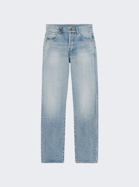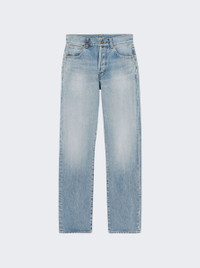 Details - Mid-rise, 5-pocket jeans - Organic cotton - Relaxed fit - Cassandre charm belt loop - Front button closure Dimensions: Model is 5'9"/175cm and is wearing a size US27 Composition: 100% cotton Care: care according to label Brand Style: 758262Y372Y Designer/Brand: SAINT LAURENT