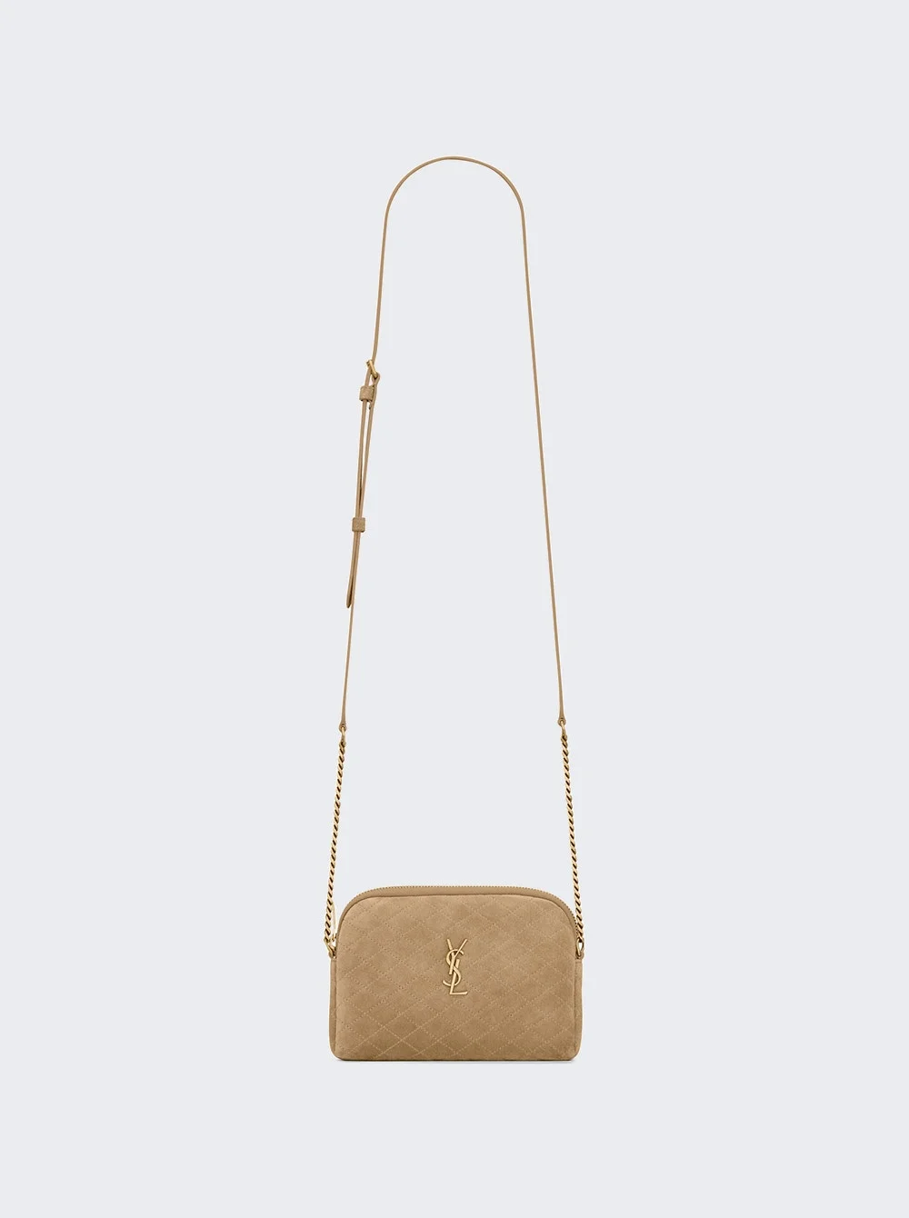 Details - Mini zip pouch with diamond-quilted overstitching - Decorated with the Cassandre - Slender and lightweight - Adjustable strap for shoulder or crossbody carry - Leather lining - Bronze-tone hardware - Material: Calfskin leather, brass Size Information: Vendor Color Code: Brand Style: 733667 1U807 Designer/Brand: SAINT LAURENT