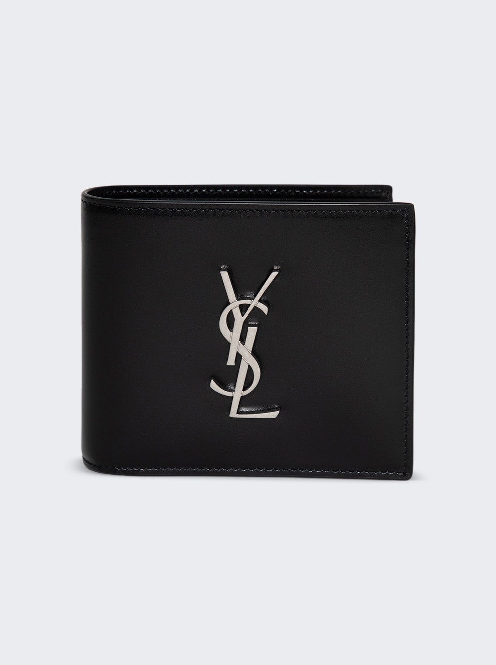 Details - Bifold wallet - 10 card slots - Two bill compartments - Metallic logo on the front - Care according to label - Material: 95% CALFSKIN, 5% BRASS Brand Style: 453276 0SX0E Designer/Brand: SAINT LAURENT