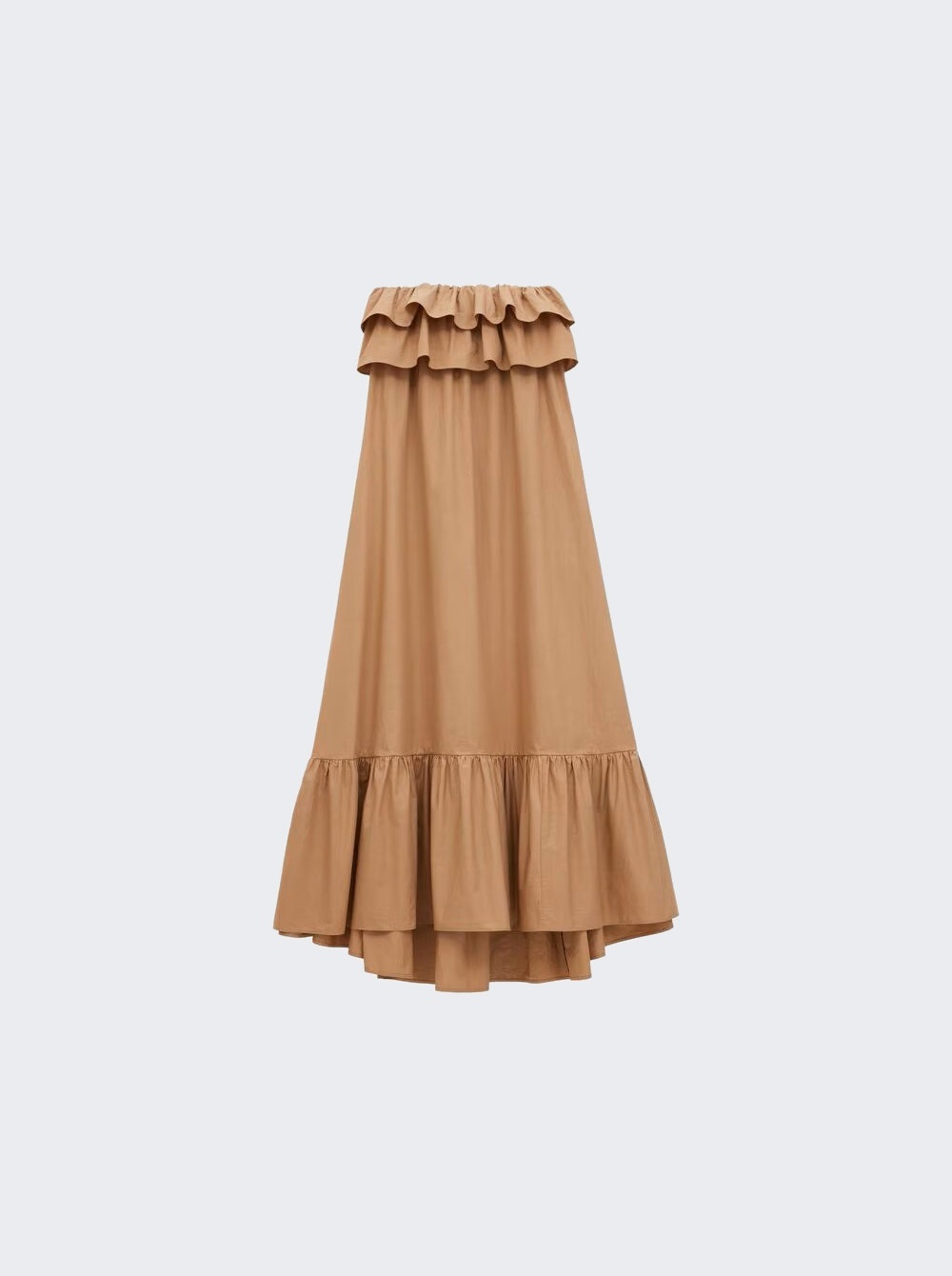 Strapless ruffled cotton-gabardine maxi dress Beige
