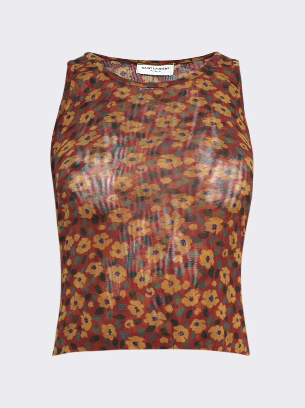 Details - Lightweight tank top - Round neck - All-over floral print - Straight hem Dimensions: Model is 5'9"/175cm and is wearing a size FR36 Composition: Fabric blend Care: Care according to label Brand Style: 778993 Y4I29 Designer/Brand: SAINT LAURENT