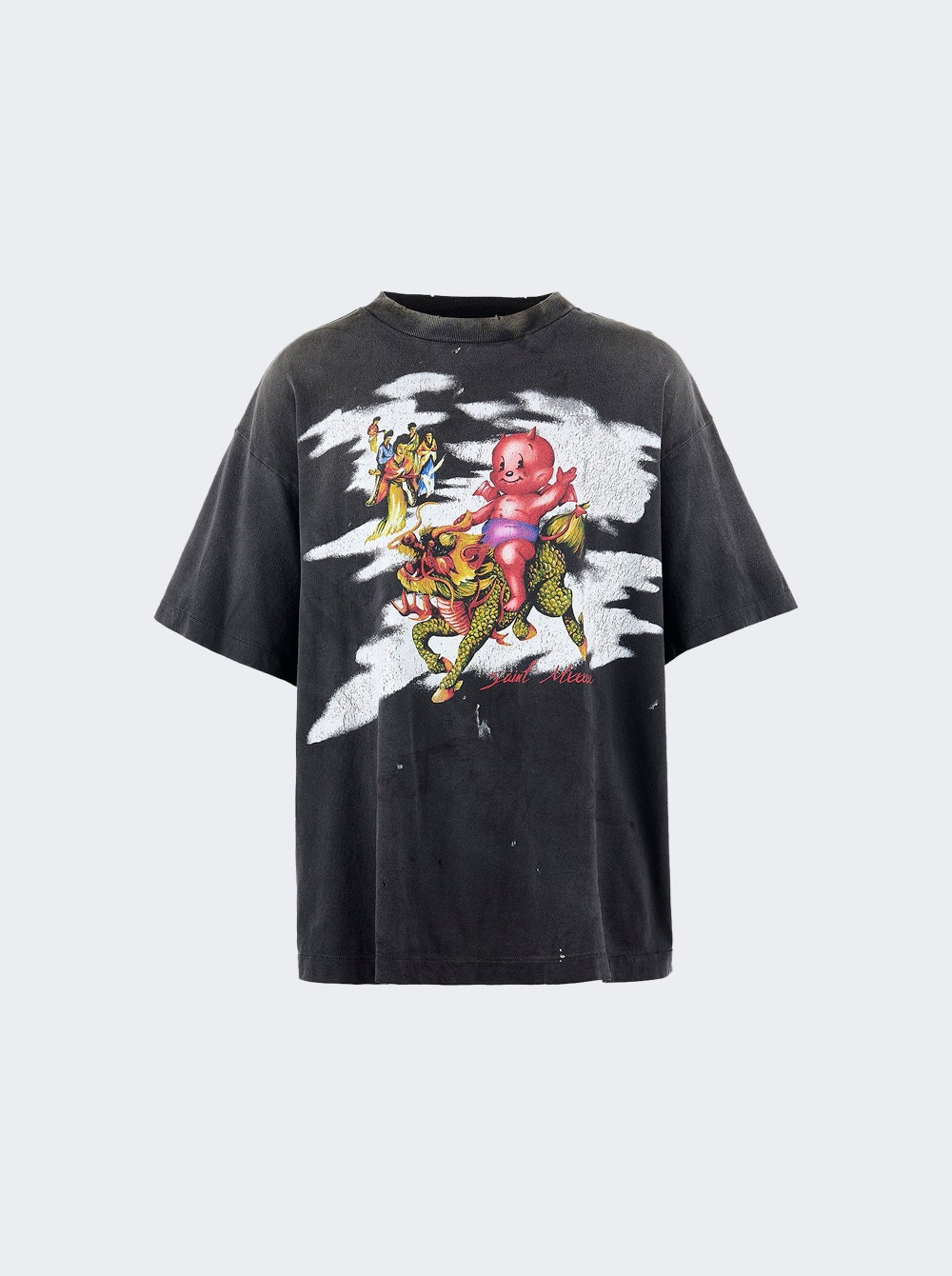 Details - Relaxed, oversized-fit t-shirt - Bold East-meets-West graphic on the front - Signature script logo and "Damaged" on the back - Fading and distressing throughout - Washed, worn-in feel - Material: Cotton Size Information: Vendor Color Code: Brand Style: SM-HR8-0000-017 Designer/Brand: SAINT MXXXXXX
