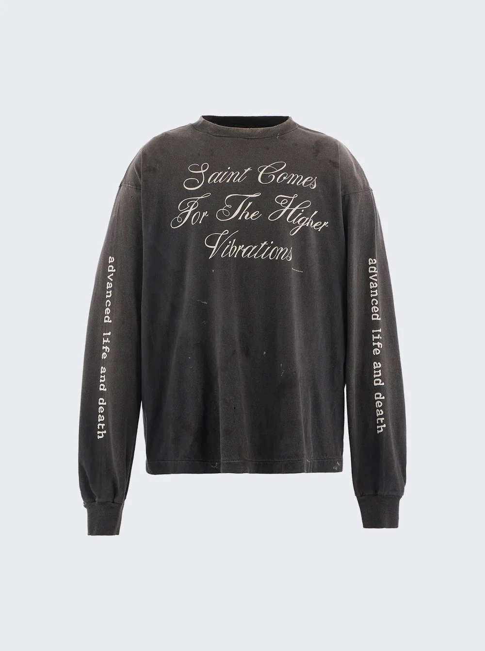 Details - Relaxed fit, long sleeve t-shirt - Heavily faded and distressed throughout - Graphic prints on the front and back - Material: 100% Cotton Size Information: Vendor Color Code: Brand Style: SM-HR1-0000-031 Designer/Brand: SAINT MXXXXXX