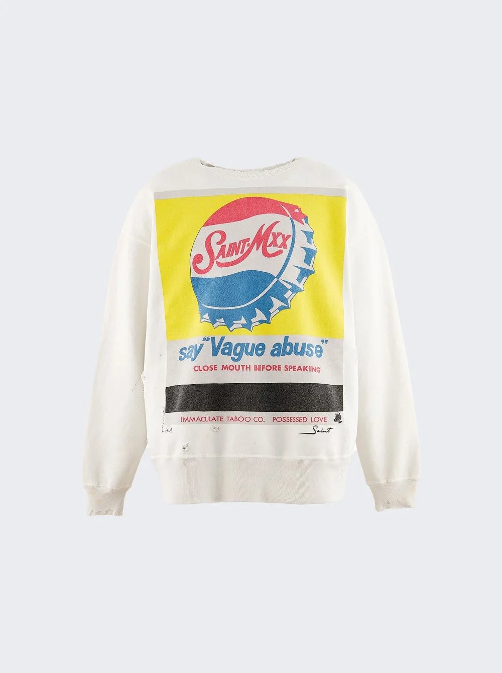 Details - Soft, mid-weight cotton fleece sweatshirt - Crewneck, relaxed fit - Heavily faded and distressed - Graphic print on the front - Material: 100% Cotton Vendor Color Code: Brand Style: SM-HR1-0000-046 Designer/Brand: SAINT MXXXXXX