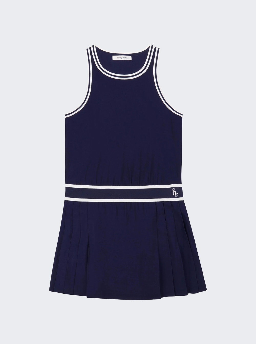 Details - Regular fit - Sleeveless - Mini length - Embroidered logo - Elasticated waistband - Pleated skirt - Fully lined - Side zip closure - Care according to label - Material: 100% Viscose Size Information: Vendor Color Code: Brand Style: DR004602302BL83 Designer/Brand: SPORTY & RICH