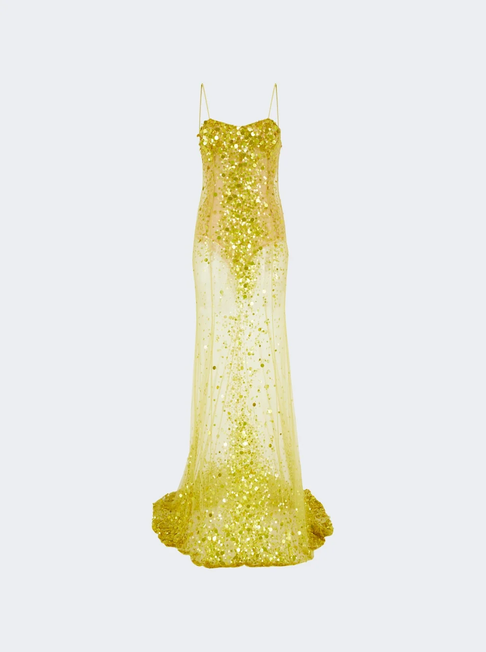 Details - Maxi length - Concealed zipped side - Hook fastening - Sequin embellishments - Built-in bodice - Sheer finish - Care according to label - Material: 100% Polyamide Vendor Color Code: Brand Style: 260WCW00265 PLL012SQ Designer/Brand: THE ATTICO