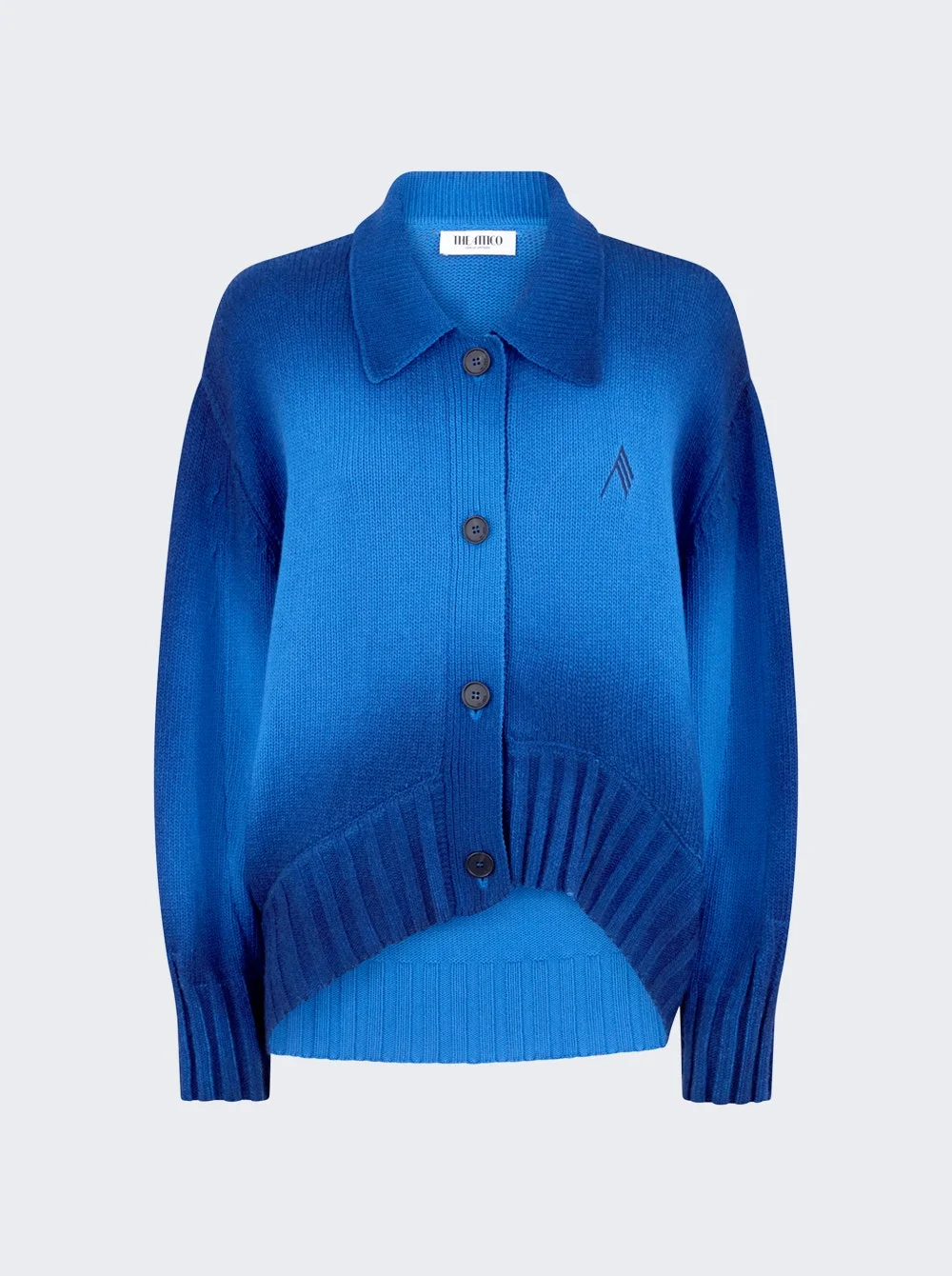 Details - Relaxed fit - Dropped shoulders - Long sleeves - Button closure - Gradient throughout - Rib-knit spread collar, hem, and cuffs - Logo embroidered at chest - Asymmetrical cropped hem - Care according to label - Material: 70% Wool, 30% Cashmere Vendor Color Code: Brand Style: 260WCD00013 KWS011SP Designer/Brand: THE ATTICO