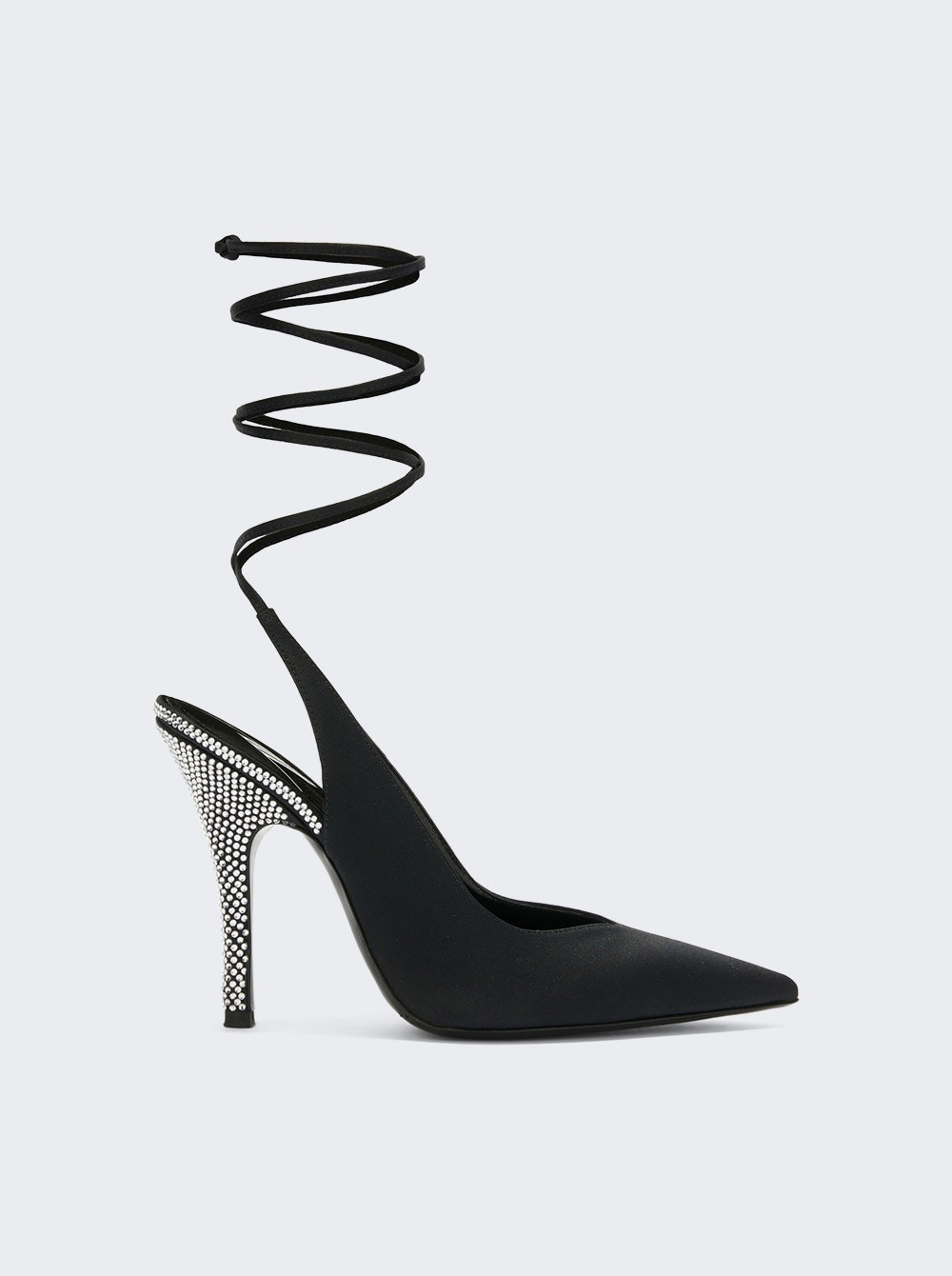 Details - Pointed toes - 'Venus'' lace-up sling-back - Black satin with crystal rhinestones - Heel height 105mm - Made in Italy Dimensions: Listed in IT sizing. Fits true to size Composition: Upper: Satin; Sole: Rubber Care: Care according to label Brand Style: 231WS032 TV07 Designer/Brand: THE ATTICO