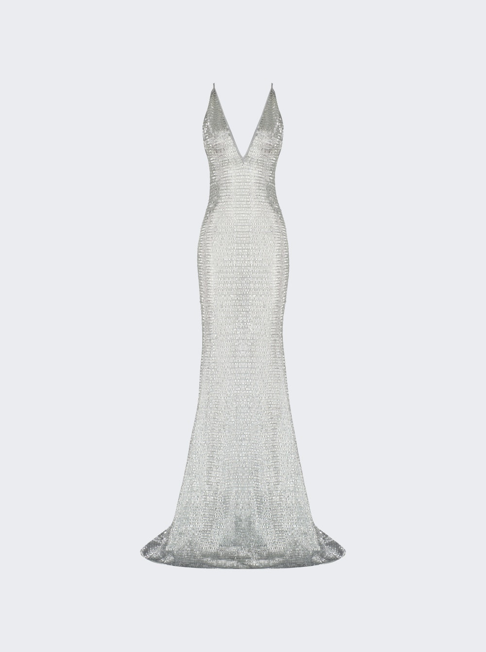 Details - Sleeveless sequined gown - Deep V neck - Backless - Full length Dimensions: Model is 5'9"/175cm and is wearing a size FR36 Composition: 100% Polyester Care: Care according to label Brand Style: NA00302840561 Designer/Brand: THE NEW ARRIVALS ILKYAZ OZEL